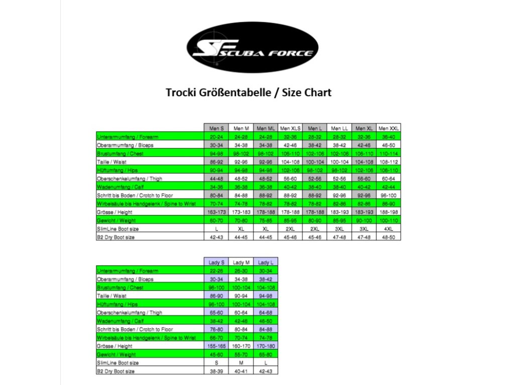 * SCUBA FORCE Xpedition SE nabízíme v pěti velikostech u žen a deseti velikostech u mužů