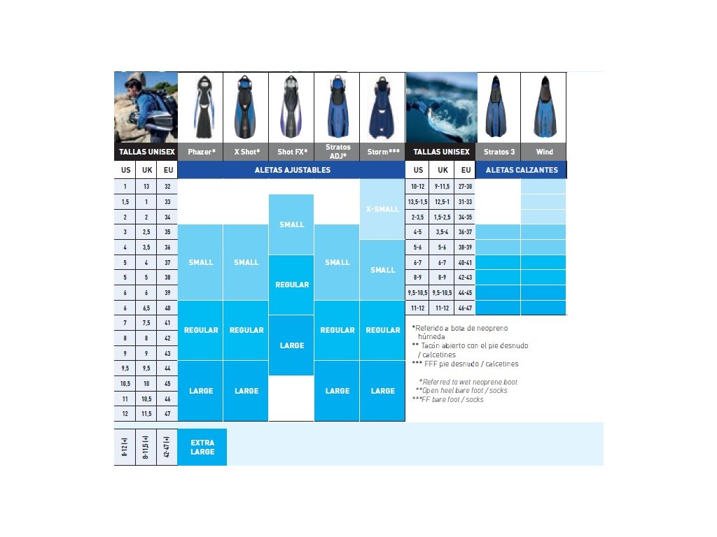 Od začátečníka po experta. To jsou nové Aqua Lung ploutve Phazer. Nová revoluční technologie-zahlé ploutve a žebra- poskytuje perfektní rovnováhu mezi silným kopem a jednoduchým pohybem využívajícím nevětší možnou energii. Konstrukce je navržena a vyrobena ze tří materiálů a vylepšeného systému odtokových kanálků. Vše ohledně této ploutve je sestaveno a navrženo k optimalizaci energie, kterou vynaložíte a při každém kopu.Specifikace ploutví:–Technologie zahnuté ploutve a žeber: Strana žeber je srdcem ploutví Phazer. Části žeber jsou z kaučuku, spolupracující s ploutví, která je navržena ve tvaru „vlny“. Nahromaděná energie při každém kopu je uvolňována během celého cyklu kopu. Efektem je pevný, silný ale přitom jednoduchý kop, vhodný jak pro začátečníky, tak i pro zkušené potápěče.–Nový gumový pásek: vybavený novým gumovým páskem a patní částí pro rychlé a jednoduché navlékání a sundávání–Tří-materiálová konstrukce: optimalizuje každou plochu ploutve: botku, list ploutve a postranní žebra jsou vyrobené ze specificky navržených a pokročilých materiálů abychom docílili co nejlepšího výkonu.– Hydro Power Channel: díky tomuto speciálně navrženému kanálku před botičkou, voda může volně protékat skrz ploutev, pro zlepšení efektivity, síly a stability. Toto dělá ploutev Phazer výkonnou, silnou a ideální pro jak profesionální potápěče, tak i úplné začátečníky.–Nový systém odtokových kanálků: List ploutve vykazuje vlastnosti měkké TPR membrány, ke zlepšení průtoku vody během celého cyklu kopu.